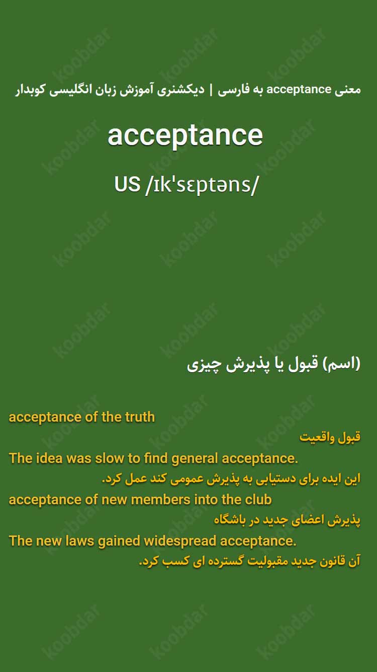 معنی acceptance به فارسی + مثالهای واقعی و جمله کاربردی