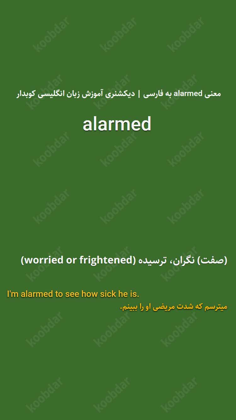 معنی alarmed به فارسی + مثالهای واقعی و جمله کاربردی