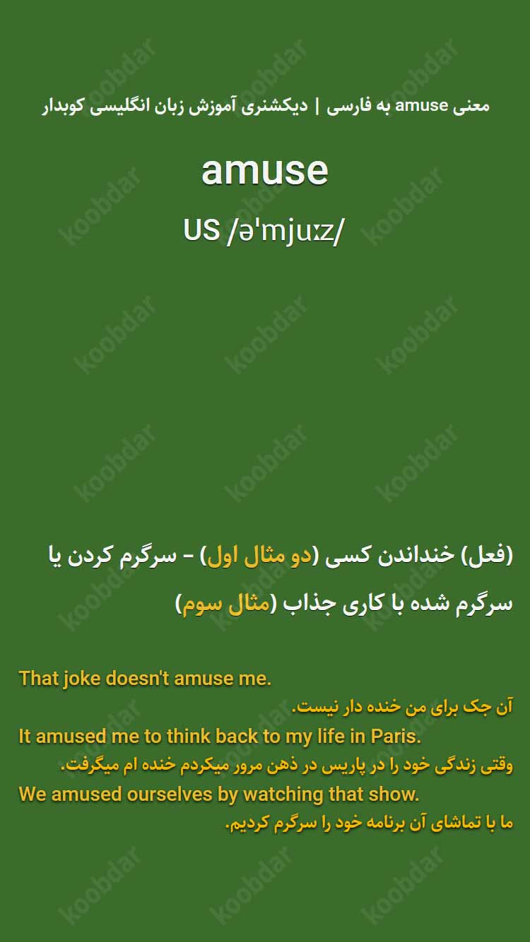 معنی amuse به فارسی + مثالهای واقعی و جمله کاربردی