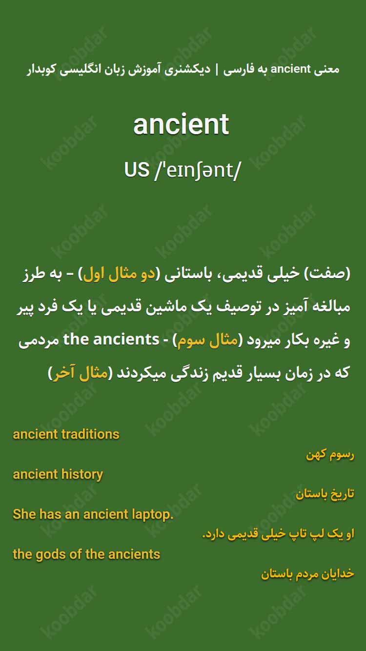 معنی ancient به فارسی + مثالهای واقعی و جمله کاربردی