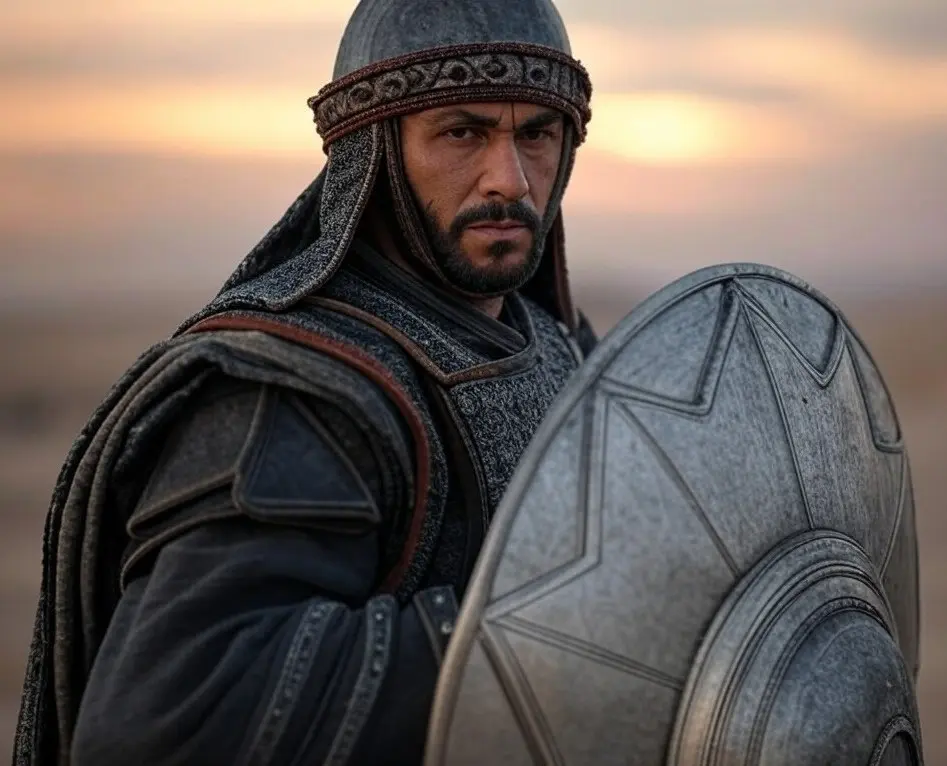 a warrior with sword and shield